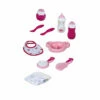 Le Sac à langer et Accessoires propose tous les éléments pour changer son grand poupon : un lait de toilette, une couche en tissu, un biberon, un bavoir, une tétine, un pot et un sac à langer 2-en-1 (tapis à langer et sac à langer).