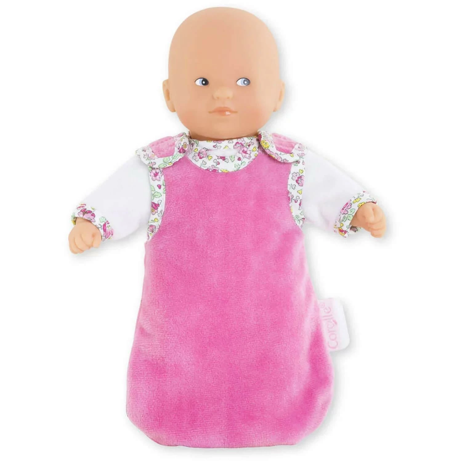 Mini Calin Bonne Nuit Jardin en Fleurs est un coffret composĂ© d’un petit poupon Mini Calin de 20 cm lĂ©ger et facile Ă emmener partout, d’un pyjama et d’une turbulette.