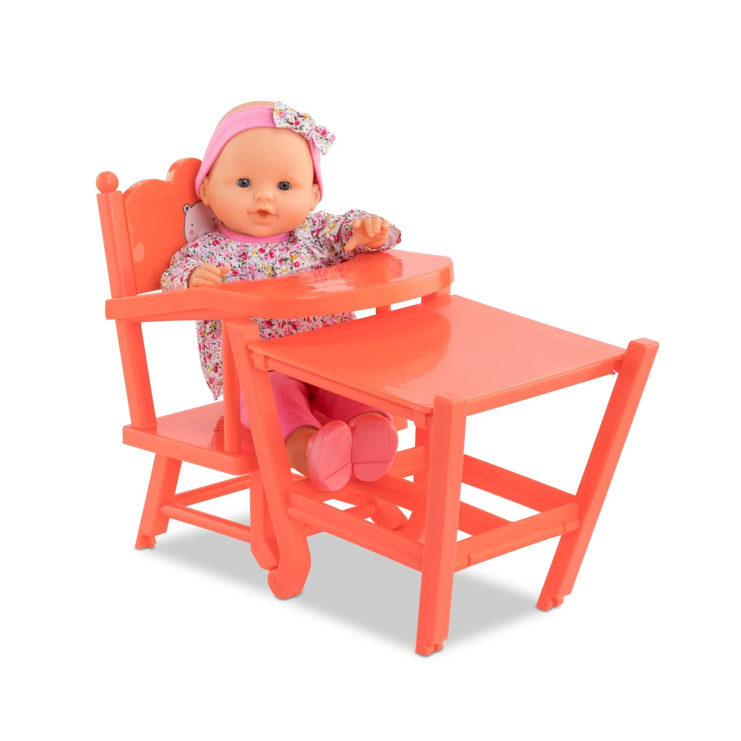 1 en 1 : position haute comme une vraie chaise et position basse pour jouer assis. Pour donner Ă manger Ă son grand poupon de 36 Ă 42cm. DĂšs 3 ans. Ă table ! La Chaise Haute est adaptĂ©e aux grands poupons de 36 Ă 42cm Corolle. Elle est 2 en 1 : elle se place en position haute comme celle d’un vrai bĂ©bĂ© ou en position basse pour faciliter le jeu assis. Sur sa petite tablette, on peut poser le repas de son grand poupon.