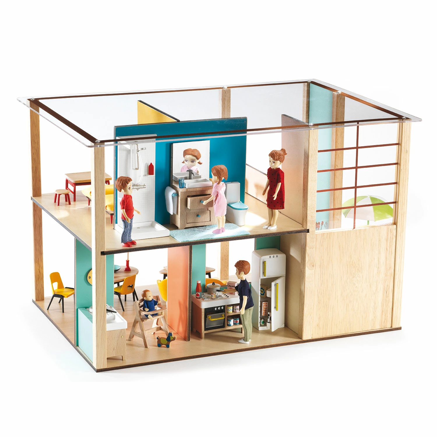 Cet habitat est très moderne et permettra Ă l’enfant de l’agrĂ©menter comme il le souhaite avec les meubles et les poupĂ©es vendus sĂ©parĂ©ment. La maison est vendue vide avec les murs très colorĂ©s. CrĂ©ez un salon, une salle Ă manger, un espace bureau et bibliothèque, une cuisine et Ă l’Ă©tage une salle de bain, la chambre des parents et la chambre des enfants.