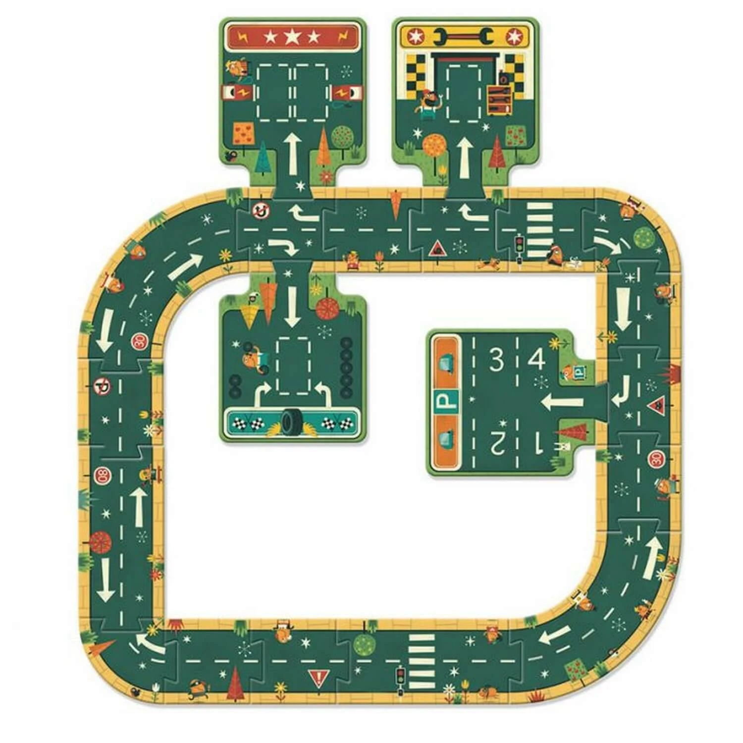 Puzzle spécialement conçu pour jouer aux petites voitures dessus.
