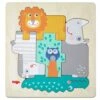 Farm Story est un puzzle en bois sur le thème de la ferme. Les pièces Ă©paisses tiennent debout et permettent Ă l’enfant de s’amuser avec les animaux et le dĂ©cor.
