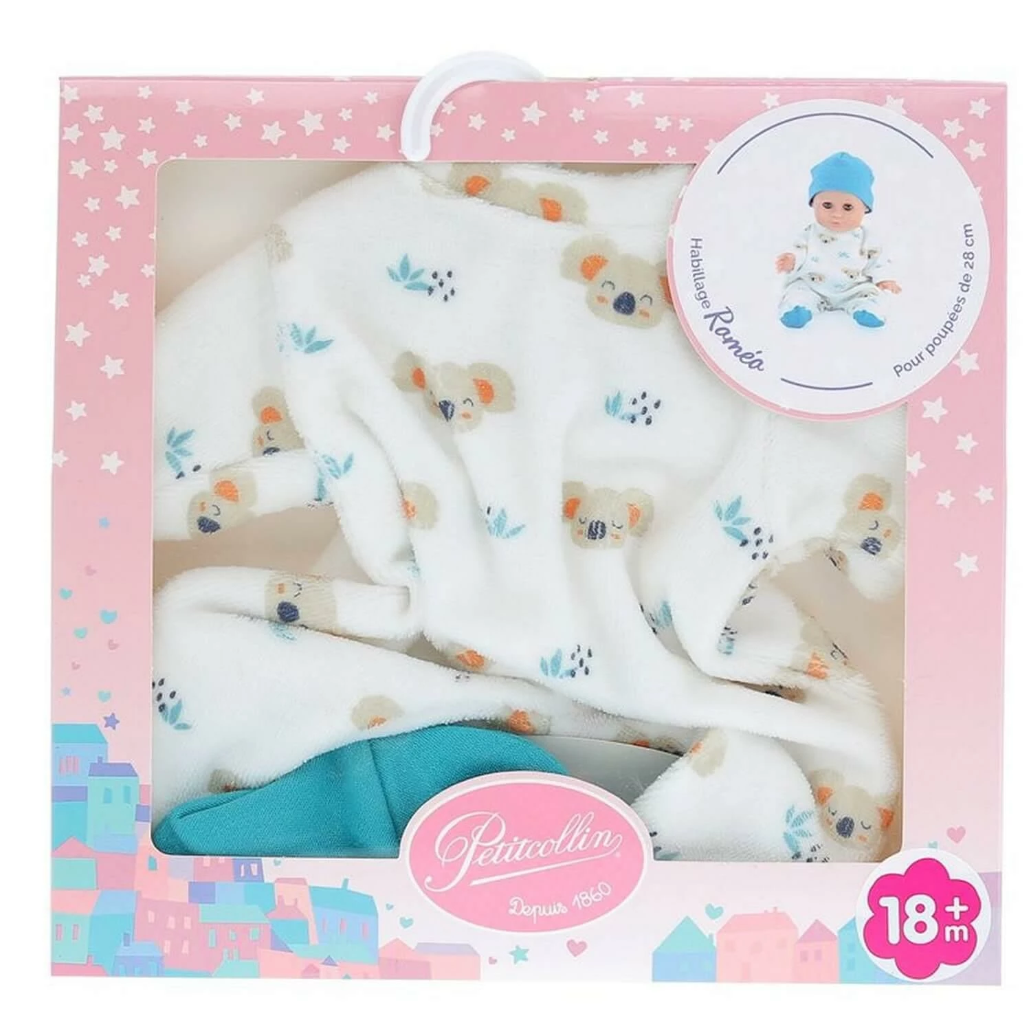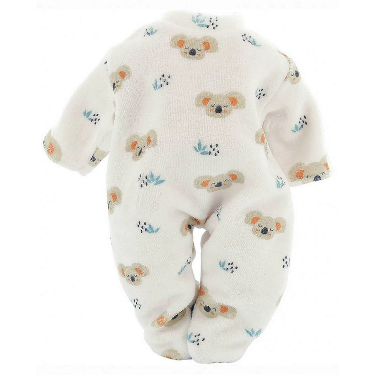 La tenue se compose d’un pyjama blanc avec motifs koala et d’un bonnet bleu. Une tenue parfaite pour habiller la poupĂ©e de votre enfant !