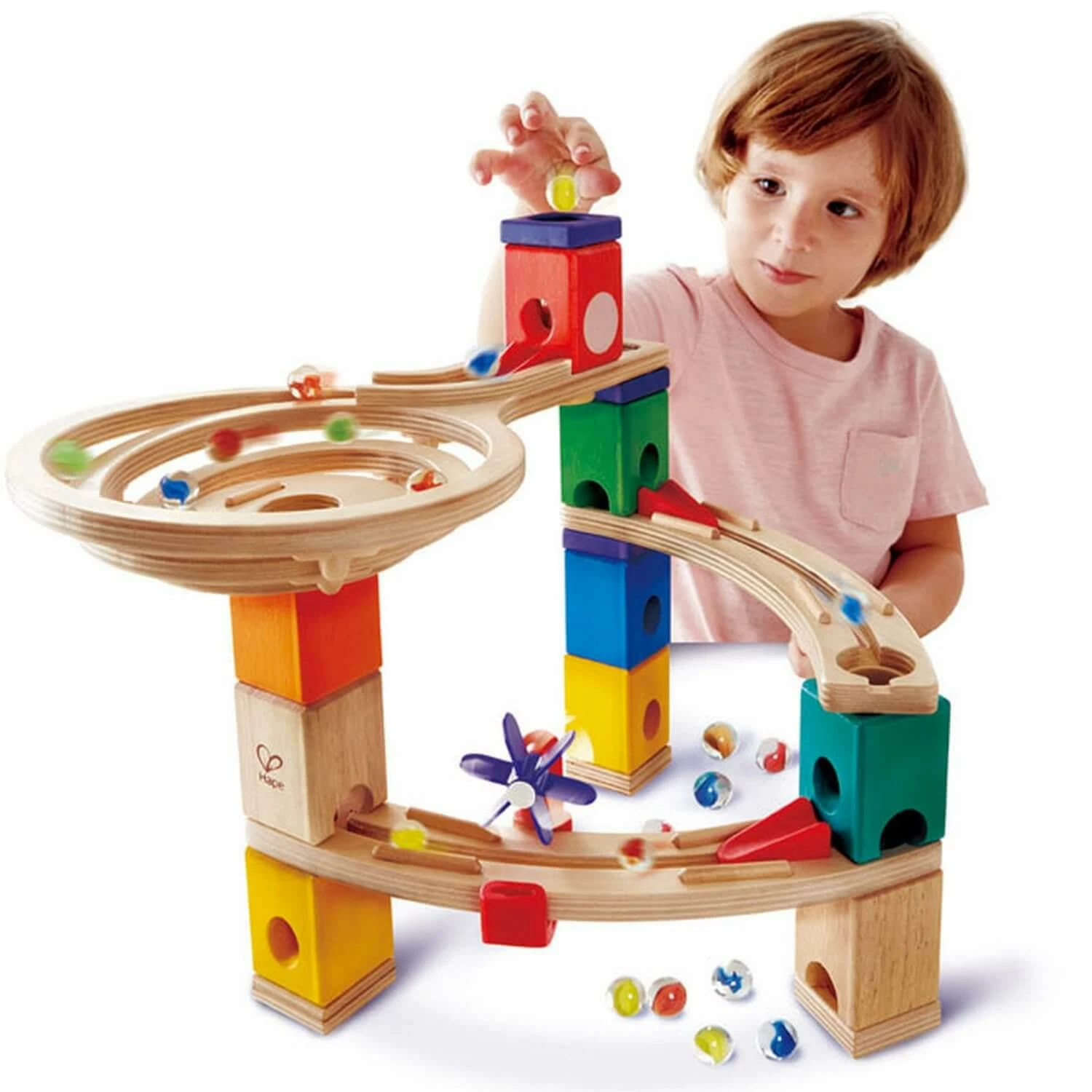 Votre enfant va adorer construire son circuit Ă billes pour pouvoir ensuite s’amuser Ă les faire dĂ©valer sur sa crĂ©ation.
