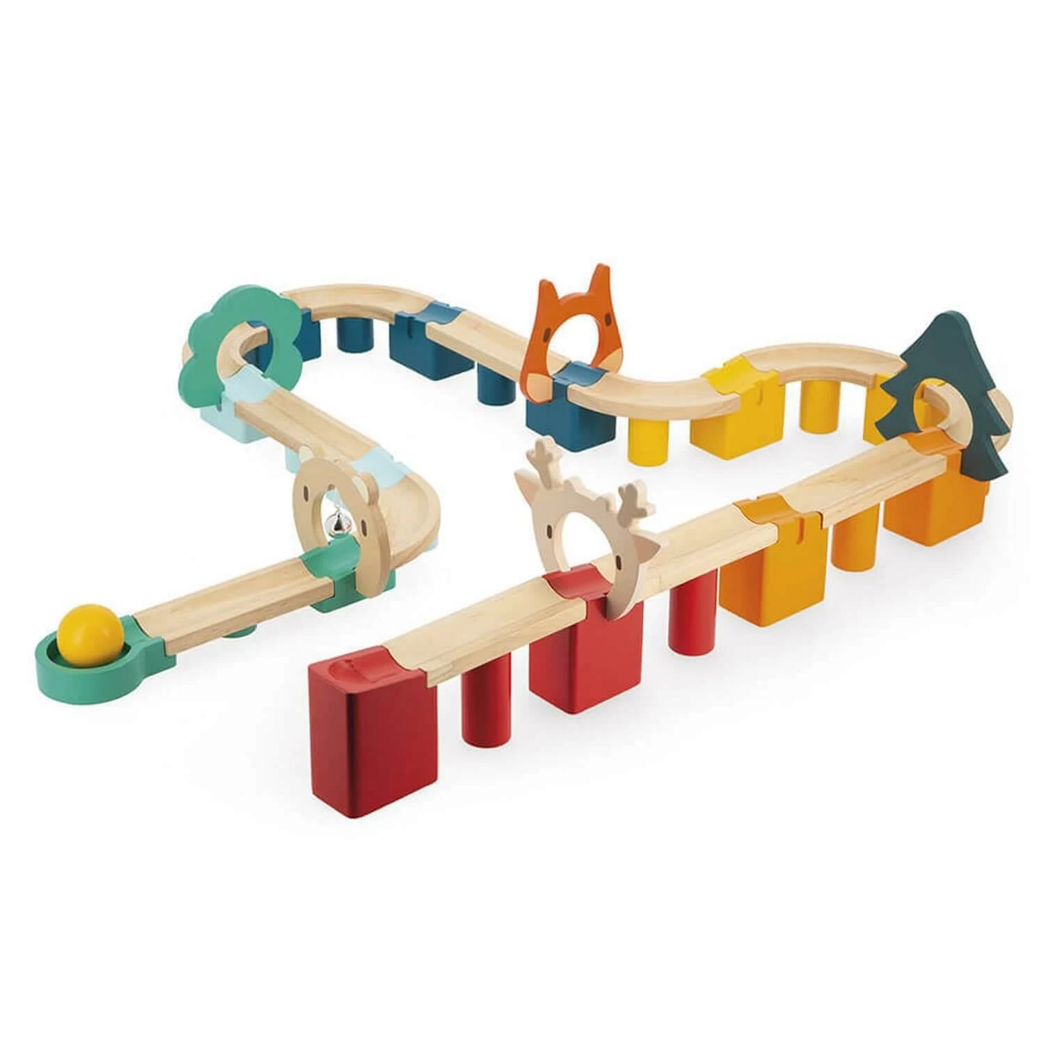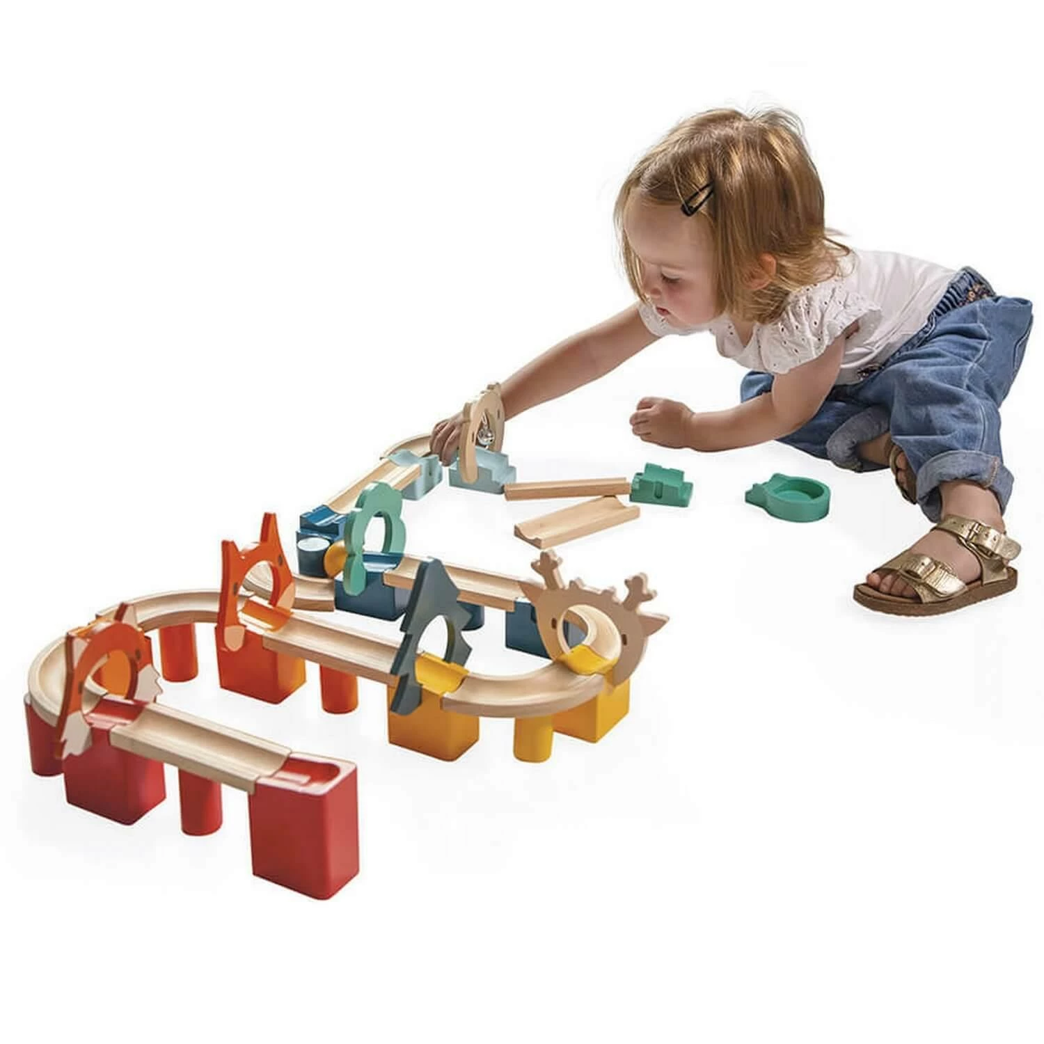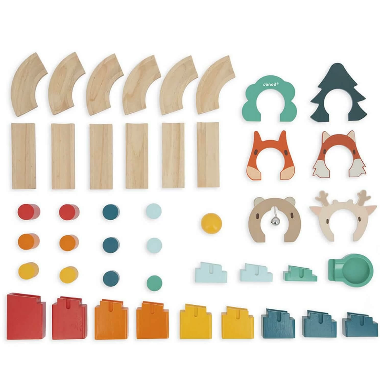 Cet set complet contient 44 pièces en bois au total, soit : 13 connecteurs, 12 piliers, 12 rails, 6 portes et 1 balle. Un super moyen de dĂ©velopper la motricitĂ© fine, l’imagination et la rĂ©solution de problèmes simples !