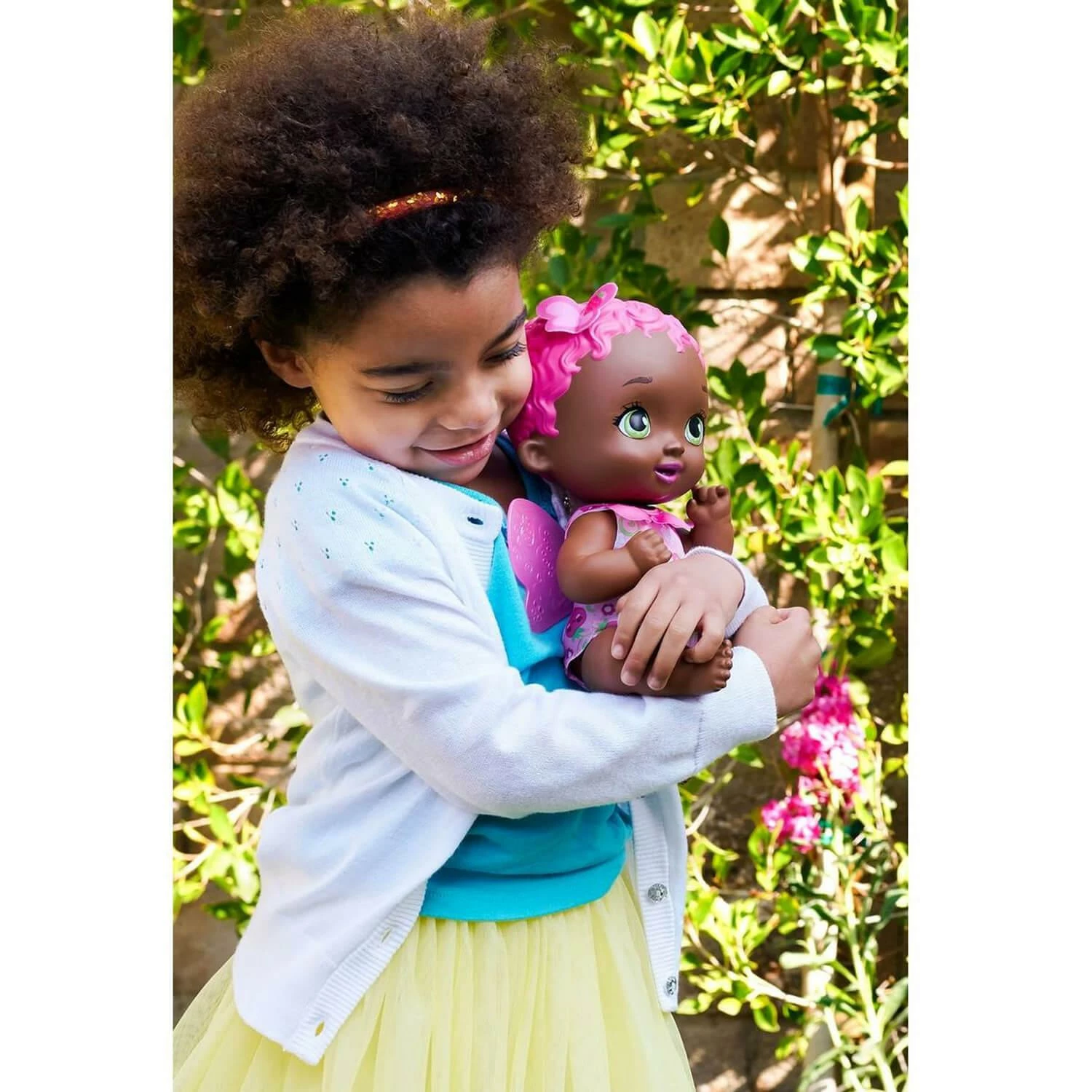 Cette poupée Baby Butterfly est pleine de douces surprises ! Les enfants adoreront voir flotter les coeurs sur ses ailes adorables, ses cheveux fantastiques et sentir son délicieux parfum de fraise. Ils pourront donner à manger à la poupée grâce à la cuillère et la tasse (il suffit d’ajouter de l’eau froide pour le plaisir de le voir changer de couleur).