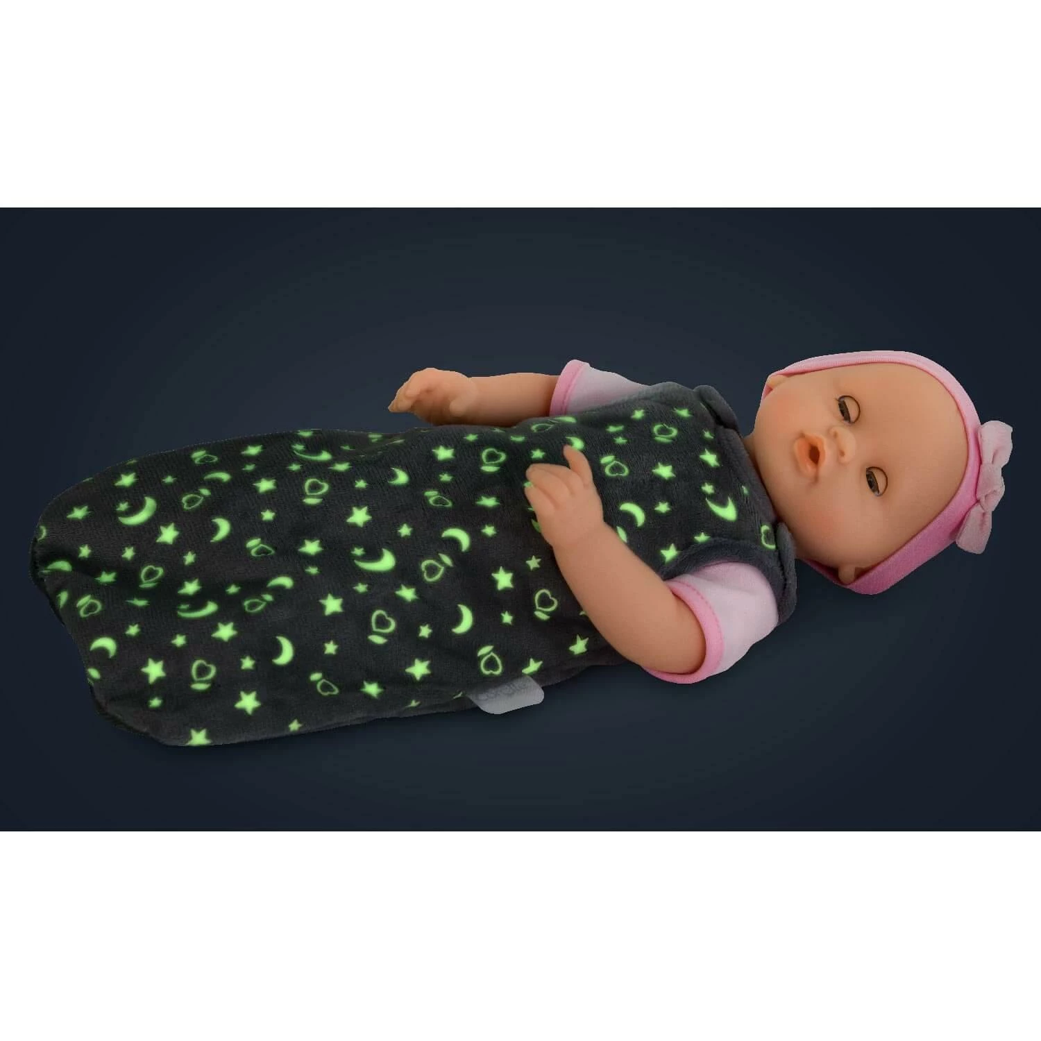 Le coffret Bébé Calin Dodo comprend 1 petit poupon de 30 cm, la taille parfaitement adaptée aux petits bras et mains de l’enfant pour le manipuler, et 4 accessoires : 1 pyjama, 1 turbulette qui brille dans la nuit, 1 biberon et 1 tétine. La turbulette se charge à la lumière artificielle et à la lumière du jour.