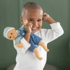 Bébé Calin Maël est un petit poupon de 30 cm, la taille parfaitement adaptée aux petits bras et mains de l’enfant pour le manipuler.