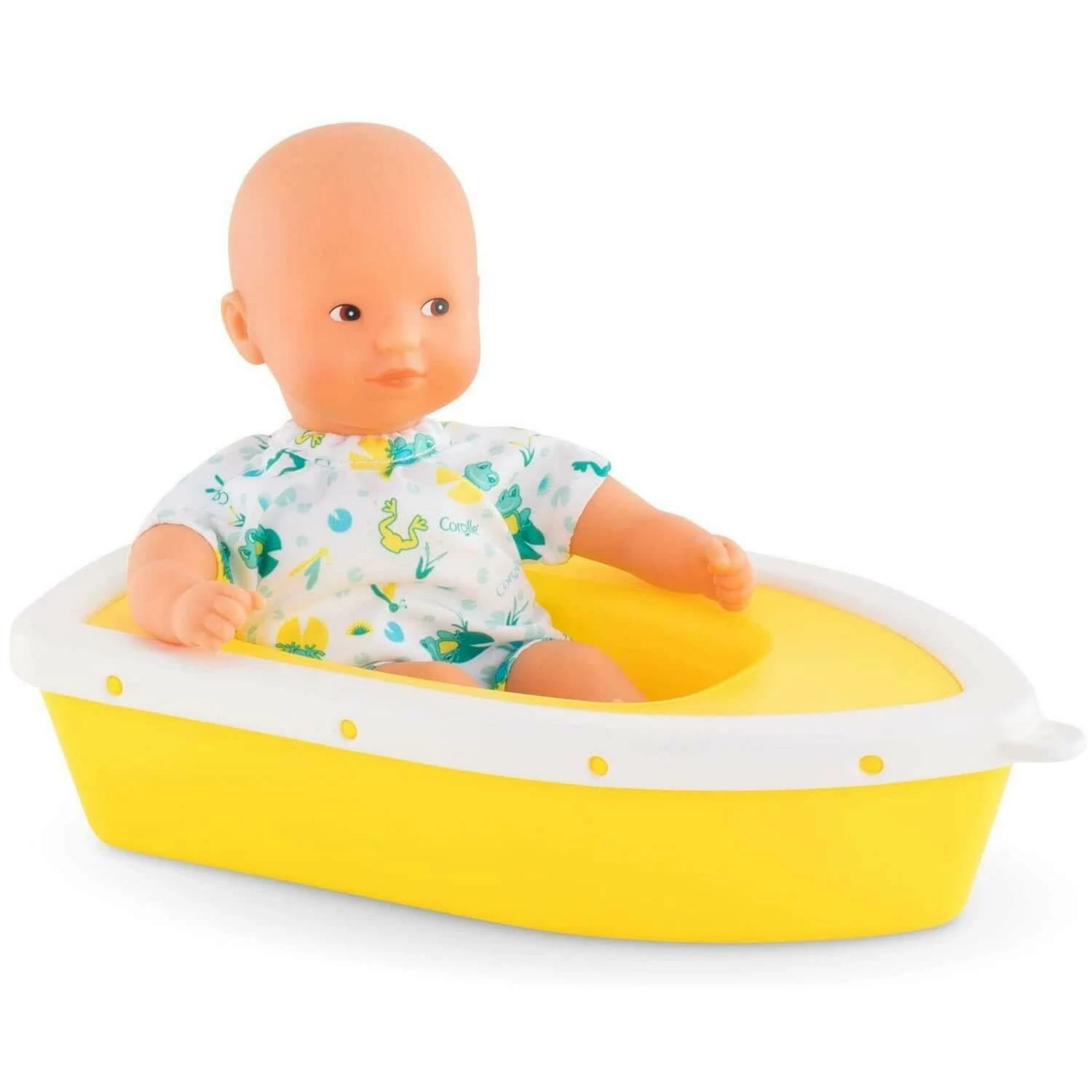 Mini Bain Plouf est un coffret composĂ© d’un poupon Mini Bain de 20 cm et d’une barque.