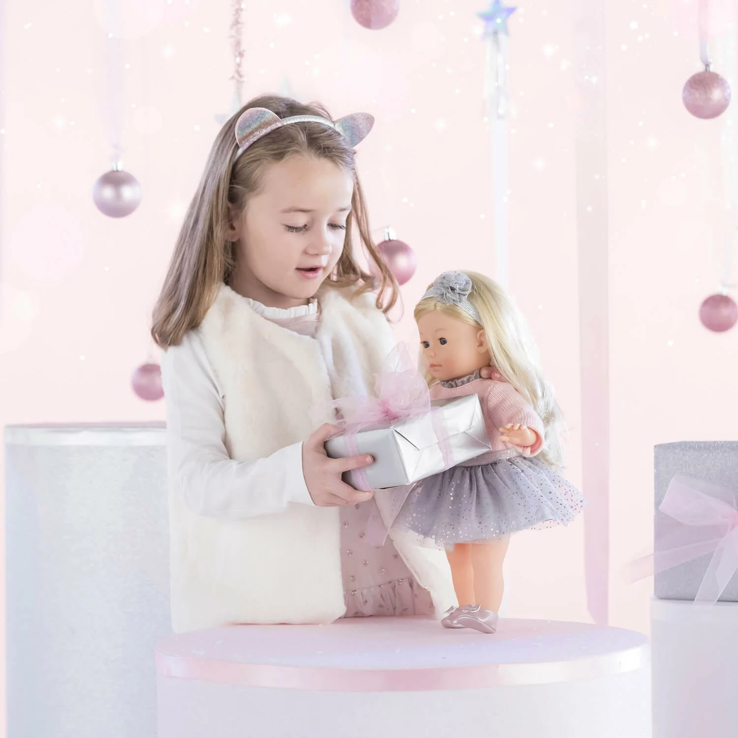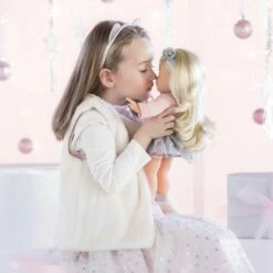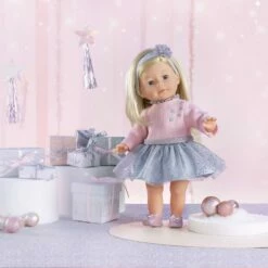 Priscille, poupée de 36 cm, a un corps souple « effet » sous-vêtements et de longs cheveux blonds faciles à coiffer. Son visage, ses bras et ses jambes, à la délicate senteur de vanille, sont en vinyle doux au toucher. Elle ferme les yeux quand on la couche sur le dos.
