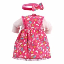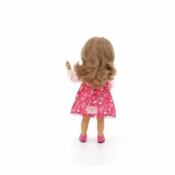 Valentine porte une belle rose fuchsia avec un effet tablier et des manches longues en jersey rose clair. Elle porte Ă©galement des chaussures rose fuchsia pour aller avec sa belle robe, qui se ferment Ă l’aide de velcro pour enlever et remettre facilement chaussure Ă son pied. Sa tenue est complĂ©tĂ©e par un bandeau dans ses cheveux, assorti Ă sa robe. Sa robe se ferme Ă©galement Ă l’aide de velcro dans le dos pour permettre aux petits enfants un habillage facile et rapide. Les vĂŞtements sont lavables en machine dès 30° dans un petit pochon en tissu. Il n’est pas conseillĂ© de mouiller et/ou de laver les cheveux de la poupĂ©e. Valentine tient debout toute seule.