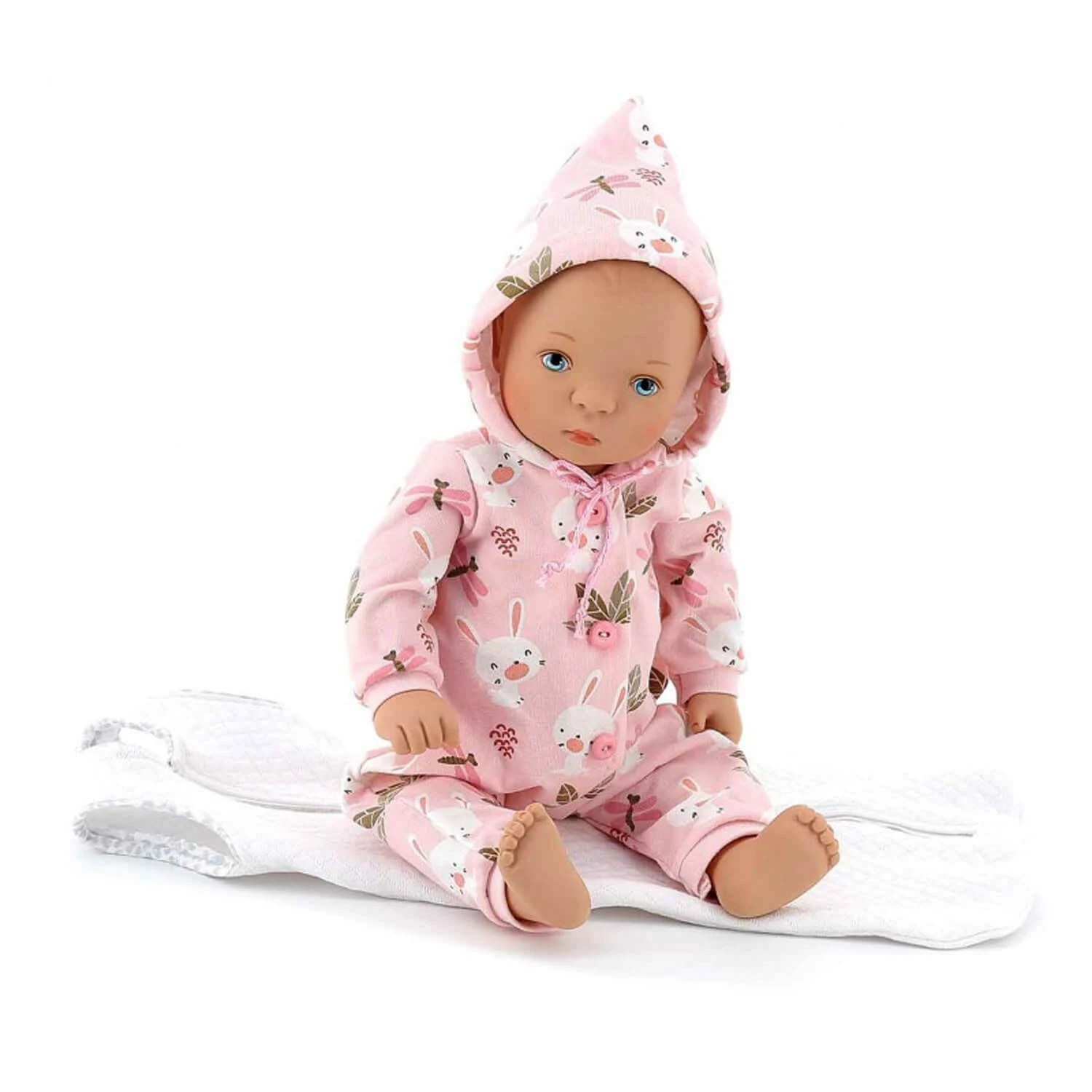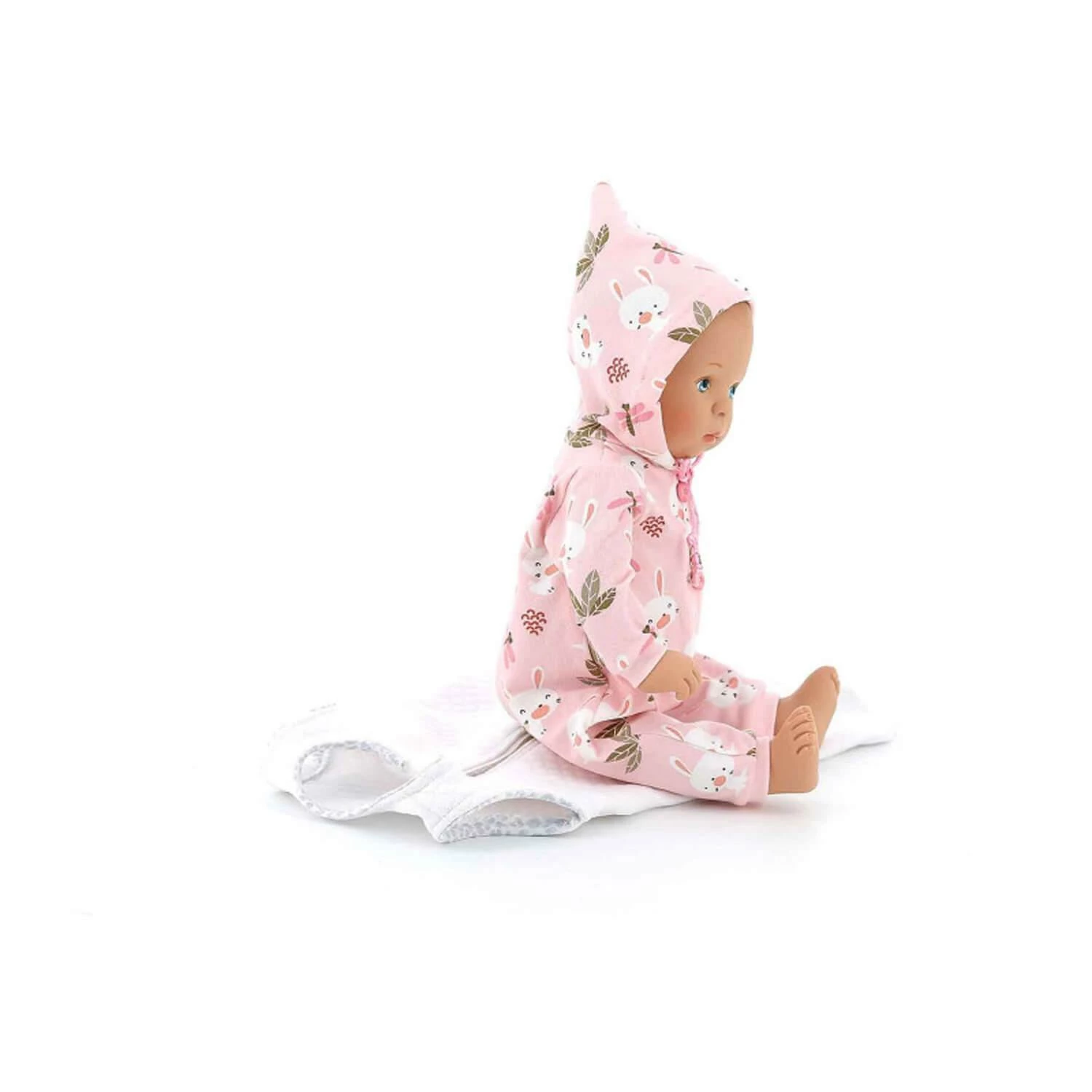 Sa tenue se compose d’un pyjama combinaison rose avec une capuche, avec sa gigoteuse blanche. La crĂ©atrice Sylvia Natterer vient enrichir les crĂ©ations Petitcollin de sa main experte et de sa passion pour l’univers de la poupĂ©e. Elle offre toujours autant de modèles uniques.