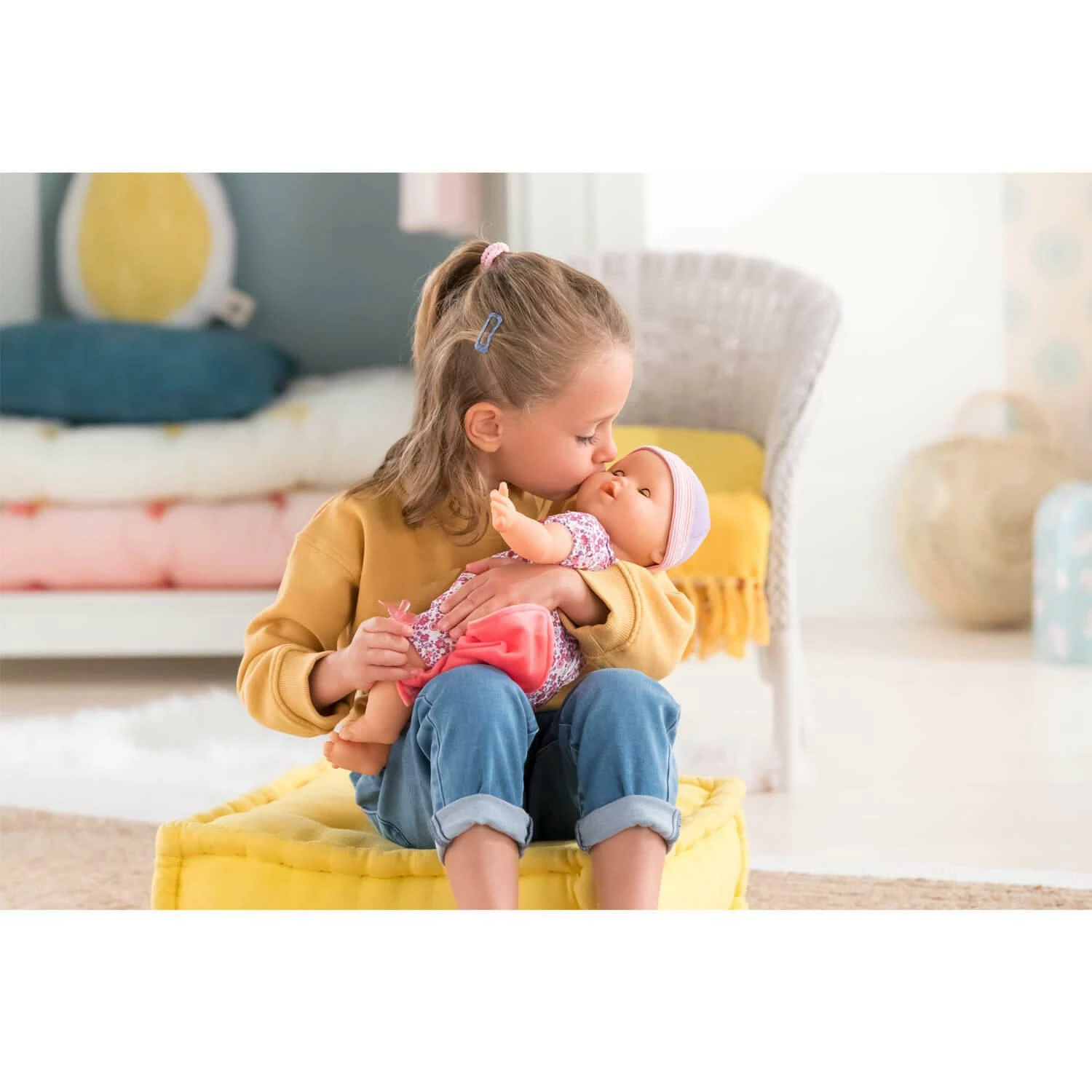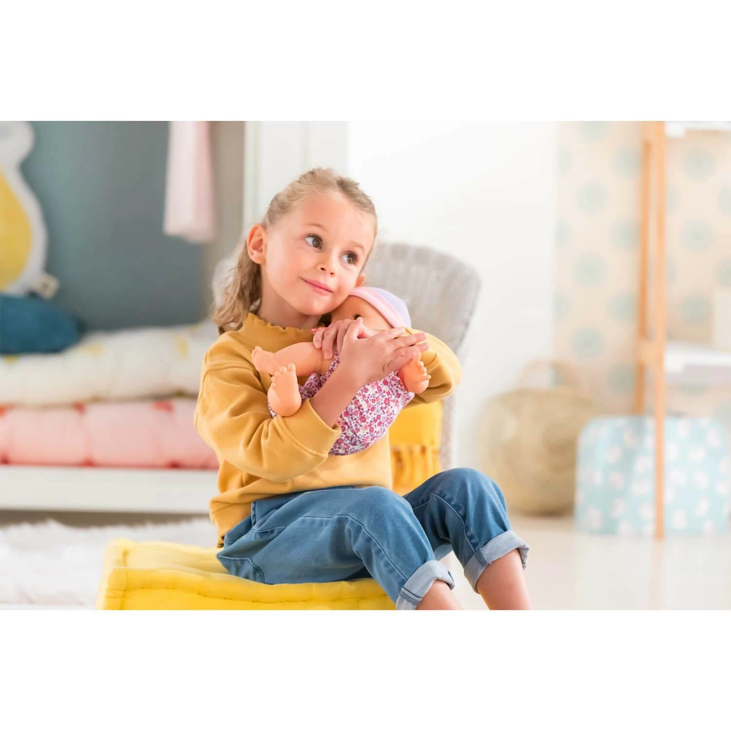 Son visage, ses bras et ses jambes, à la délicate senteur de vanille, sont en vinyle doux au toucher. Son corps est souple pour faciliter ses mouvements. Son pouce peut se maintenir dans bouche comme si elle suçait son pouce ! Avec ses yeux dormeurs, elle fait dodo quand on la couche sur le dos.