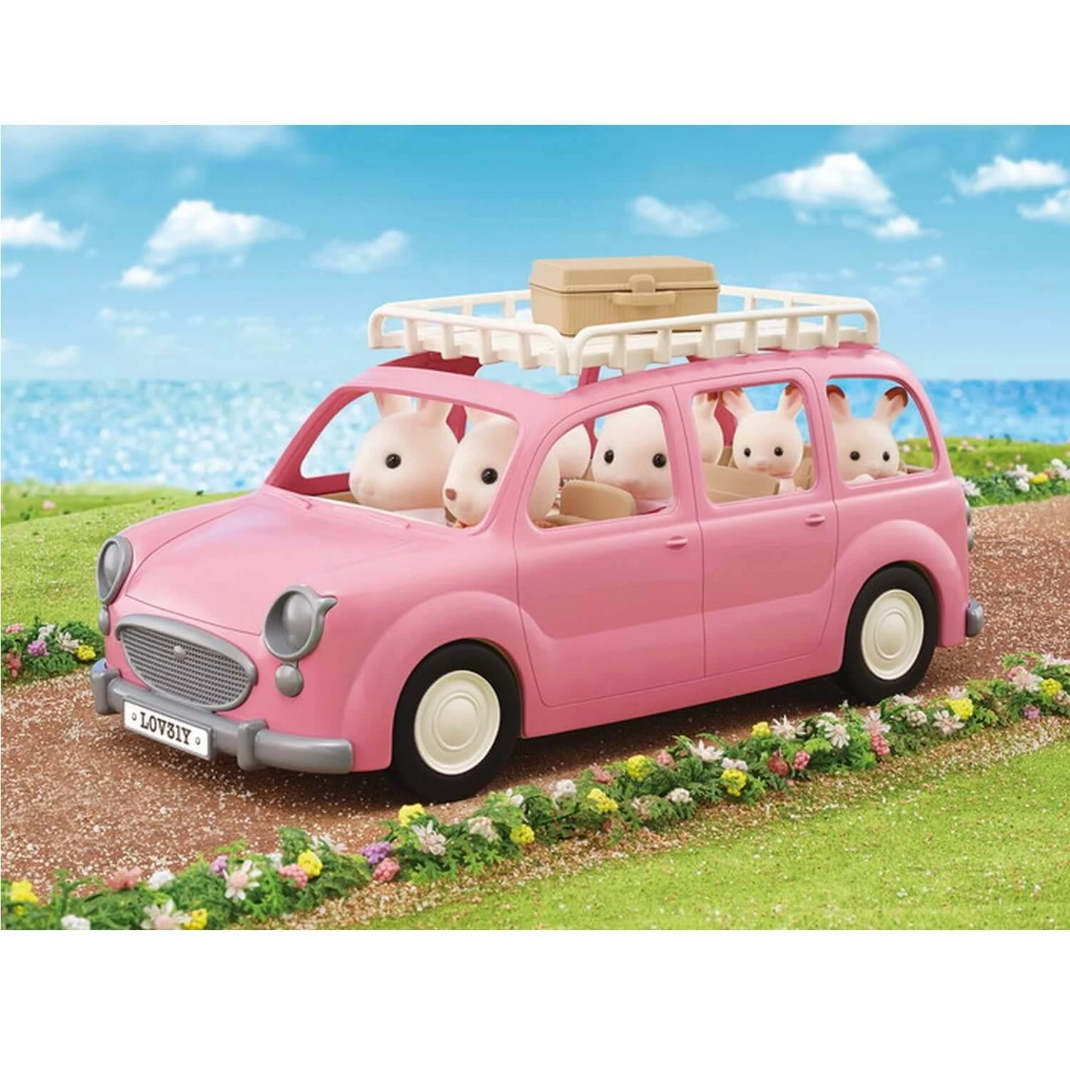 Emmenez vos Sylvanian se balader et pique-niquer au milieu de la nature dans le monospace rose qui peut contenir jusqu’Ă 7 personnages. Le volant et les roues tournent. Le dos des banquettes se retourne et se transforme en sièges-auto pour assoir les bĂ©bĂ©s.