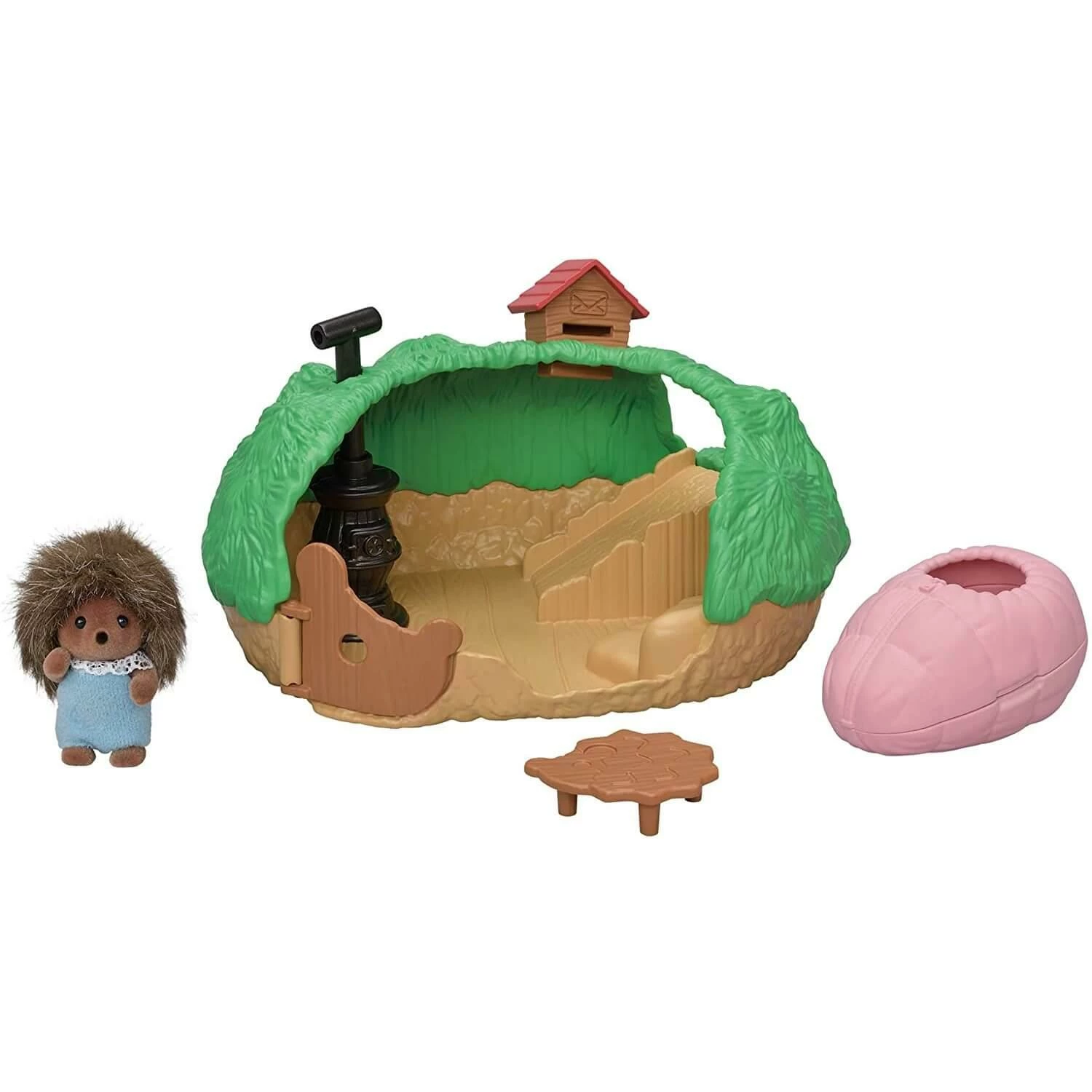 Chez les Sylvanian, les bébés aussi ont leur petit coin de nature avec cette cachette des bébés. Cet ensemble de cachette secrète comprend une cachette équipée d’une rampe, d’un poêle, d’une boîte aux lettres en forme de maison, un sac de couchage ainsi qu’une table en forme de hérisson. Elle est livrée avec Bilberry, le bébé hérisson. Le sac de couchage est parfaitement adapté à la taille des bébés Sylvanian. Cette jolie cachette est connectable avec les autres éléments de la gamme vacances.