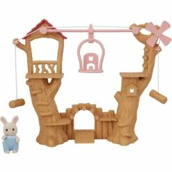 La tyrolienne des bébés permet de déplacer une figurine (bébé uniquement), d’un bout à l’autre de la structure à l’aide des rondins de bois. Elle comprend une structure en forme d’arbre avec deux plateformes, un moulin à vent, une nacelle et deux rondins de bois reliés par une ficelle. Elle est livrée avec Henry, le bébé lapin crème. La tyrolienne des bébés peut être connectée à la cabane dans les arbres pour créer un véritable par d’aventure en pleine nature ! Est aussi connectable avec la gamme vacances.