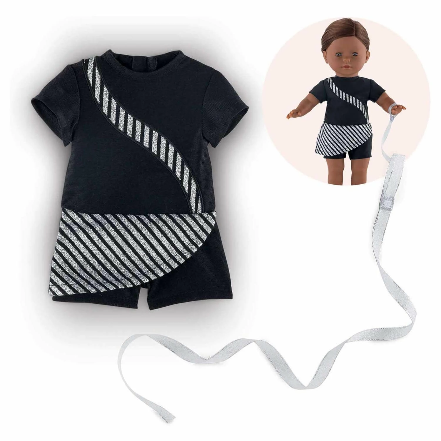 Cette jolie tenue noire et argentée qui brille est vraiment indispensable pour les cours de patinage. En plus grâce à son ruban votre poupée pourra faire de magnifiques chorégraphies sur glace.