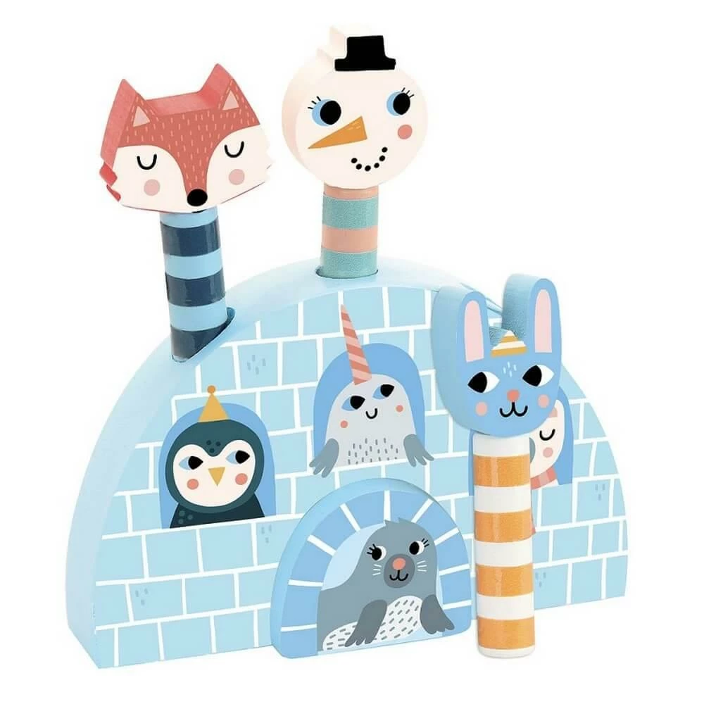 Michelle Carlsund a collaborĂ© avec la cĂ©lèbre marque de jouets Vilac pour crĂ©er ce joli Pop-up Iceland. Le jeu se compose d’un igloo et de trois personnages bondissants : un renard malin, un lapin coquin et un bonhomme de neige rigolo. Appuies sur leurs tĂŞtes, relâches et attrapes les vites ! Un jouet en bois pour dĂ©velopper la coordination Ĺ“il-main et les rĂ©flexes idĂ©al comme premier cadeau d’anniversaire ou pour le premier noĂ«l.